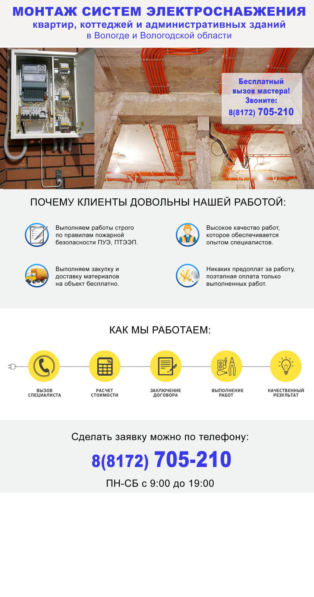 Электромонтажные работы от бюджетной квартиры до торгового центра и промышленных установок. Высокое качество работ, отличный сервис и доступные цены сделают ваше строительство/ремонт приятным делом.